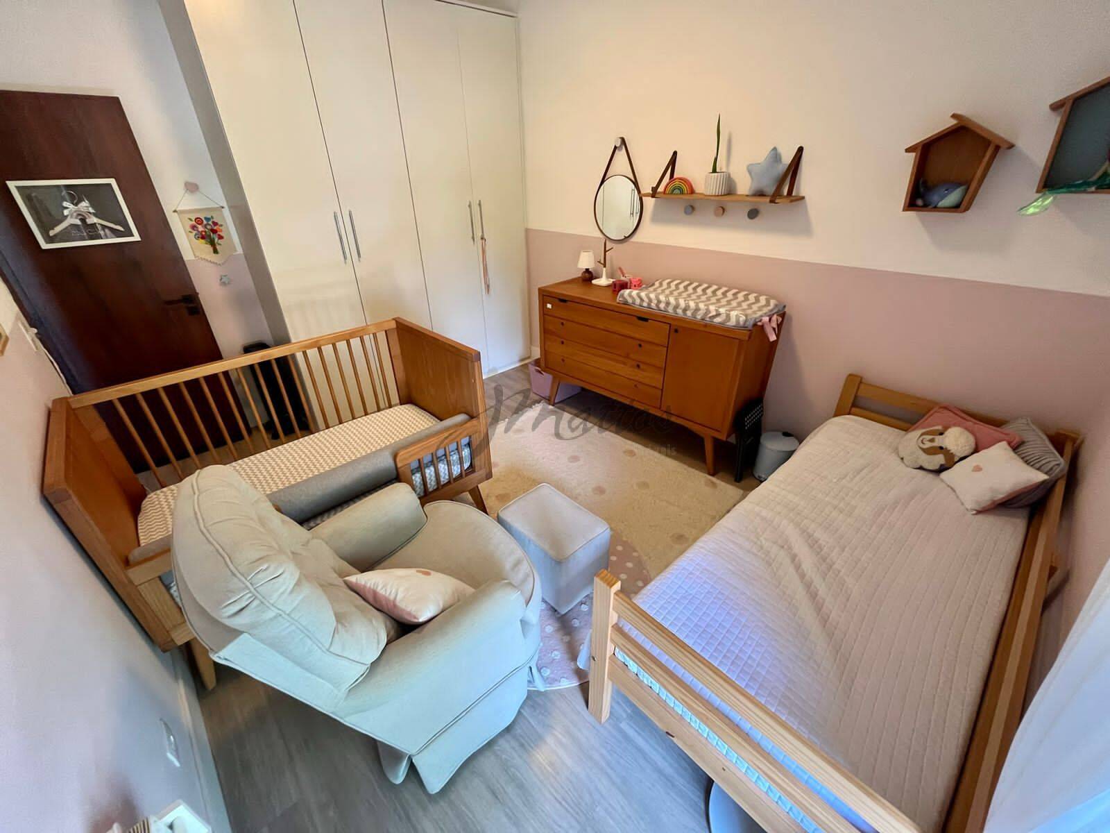 A suíte também passou por uma ampla reforma, ganhando um closet espaçoso integrado ao banheiro, que também foi ampliado. Todos os revestimentos e metais dos banheiros foram atualizados.